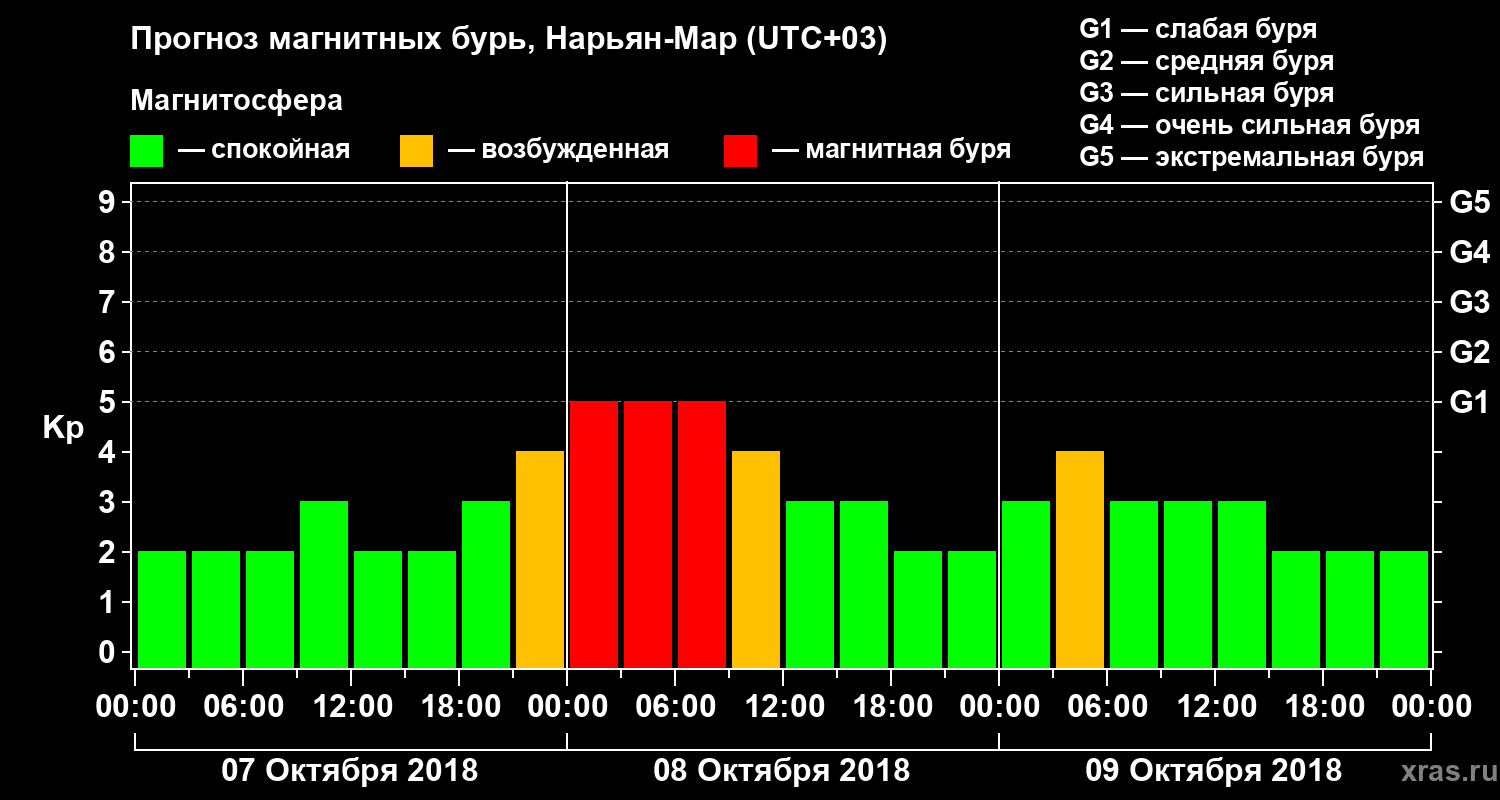Прогноз магнитных бурь в Нарьян-Маре на 7 октября 2018 года