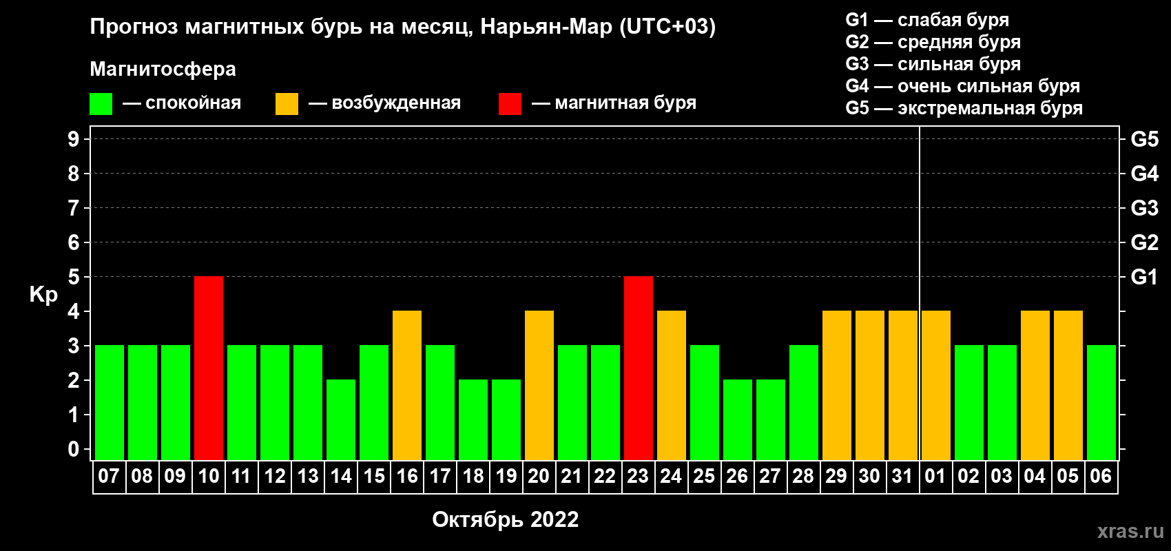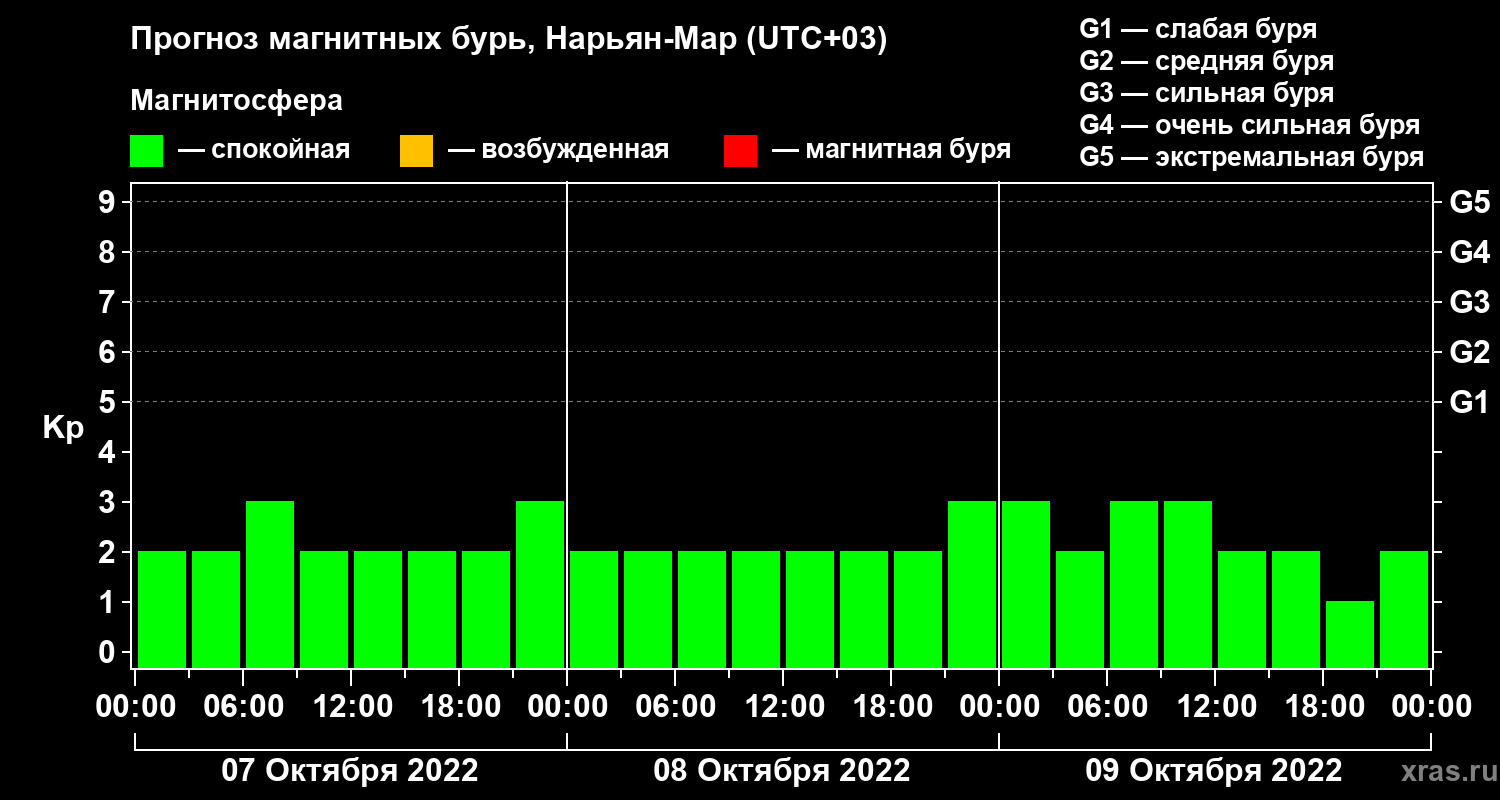 Прогноз магнитных бурь в Нарьян-Маре на 7 октября 2022 года