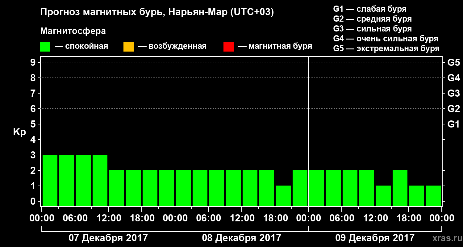 Прогноз магнитных бурь в Нарьян-Маре на 7 декабря 2017 года