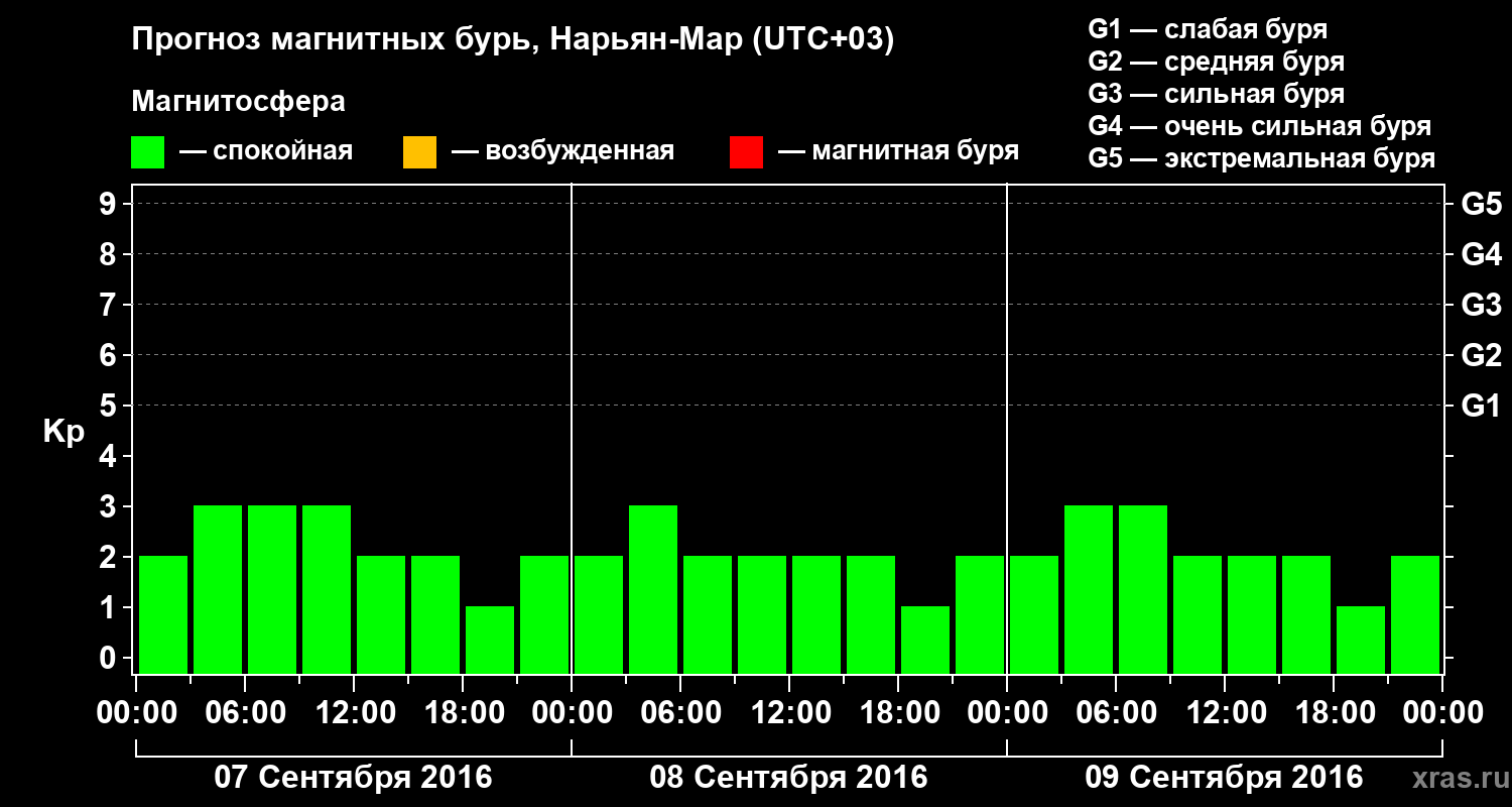 Прогноз магнитных бурь в Нарьян-Маре на 7 сентября 2016 года
