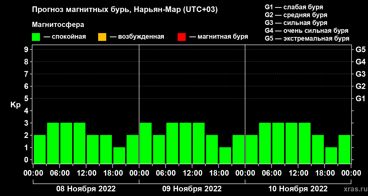 Прогноз магнитных бурь в Нарьян-Маре на 8 ноября 2022 года