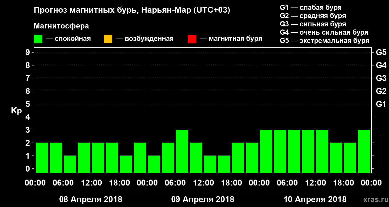 Прогноз магнитных бурь в Нарьян-Маре на 8 апреля 2018 года