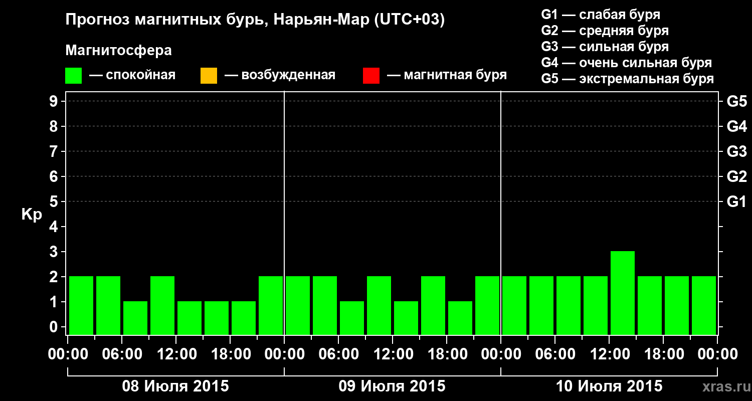 Прогноз магнитных бурь в Нарьян-Маре на 8 июля 2015 года