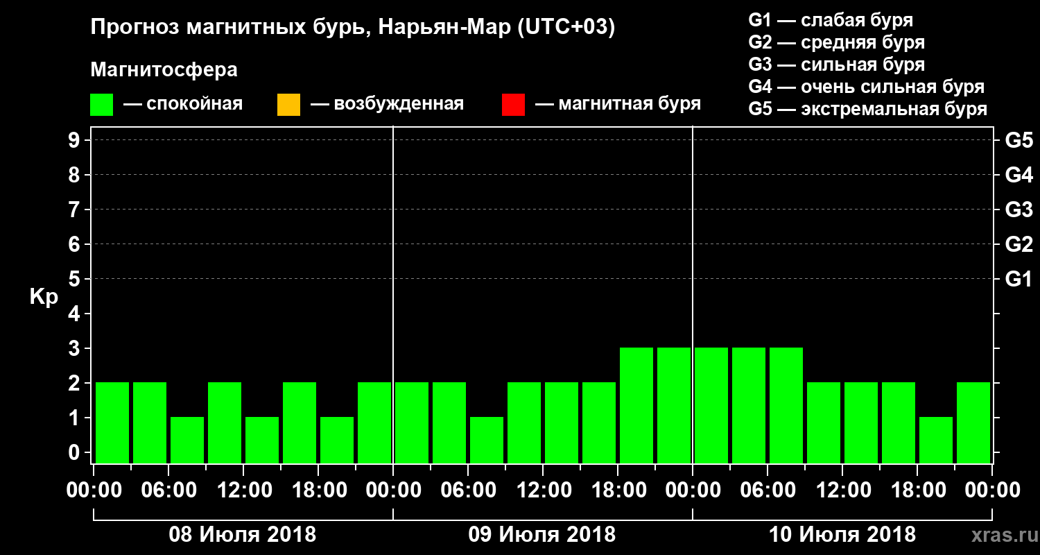 Прогноз магнитных бурь в Нарьян-Маре на 8 июля 2018 года