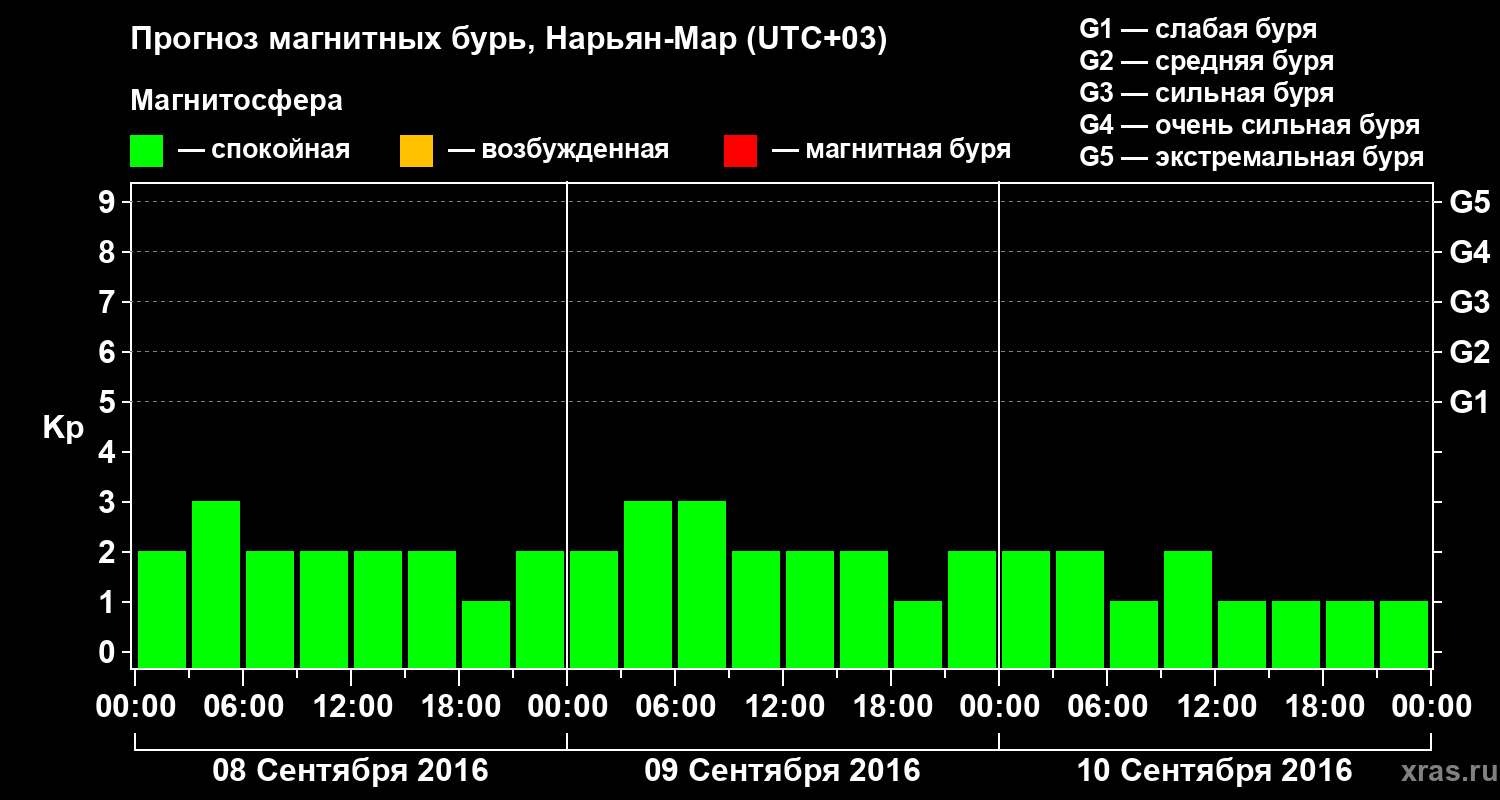 Прогноз магнитных бурь в Нарьян-Маре на 8 сентября 2016 года