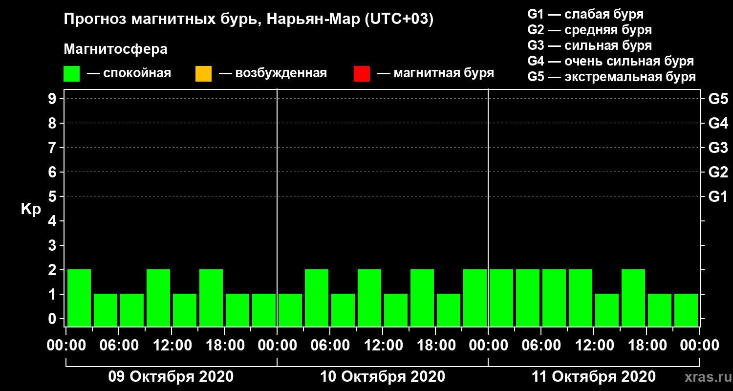 Прогноз магнитных бурь в Нарьян-Маре на 9 октября 2020 года