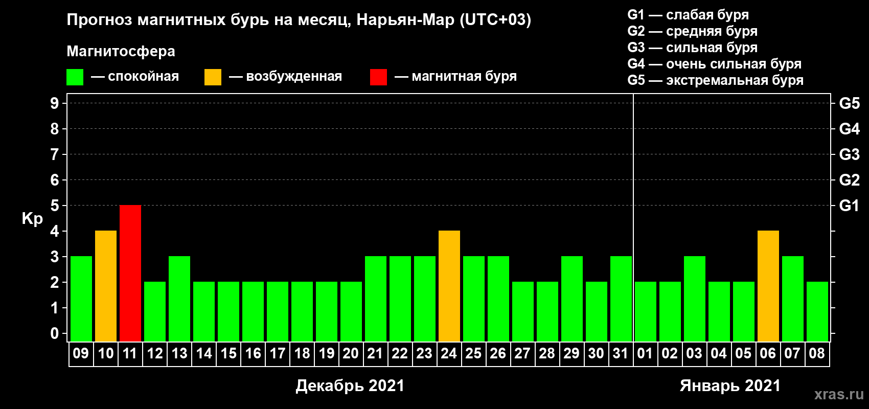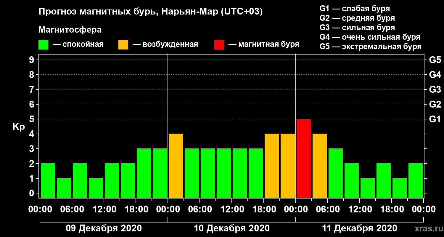 Прогноз магнитных бурь в Нарьян-Маре на 9 декабря 2020 года