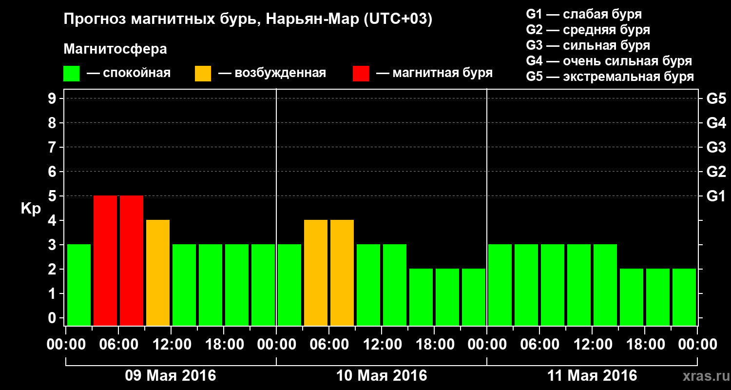 Прогноз магнитных бурь в Нарьян-Маре — 9 мая 2016 года