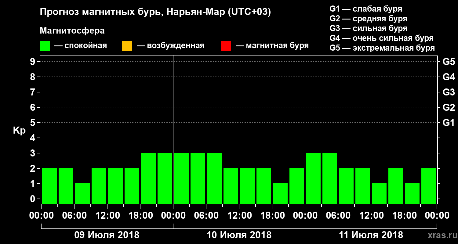 Прогноз магнитных бурь в Нарьян-Маре — 9 июля 2018 года
