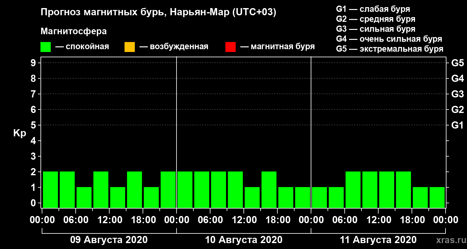 Прогноз магнитных бурь в Нарьян-Маре на 9 августа 2020 года