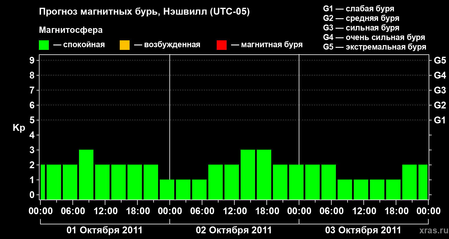 Прогноз магнитных бурь в Нэшвилле — 1 октября 2011 года
