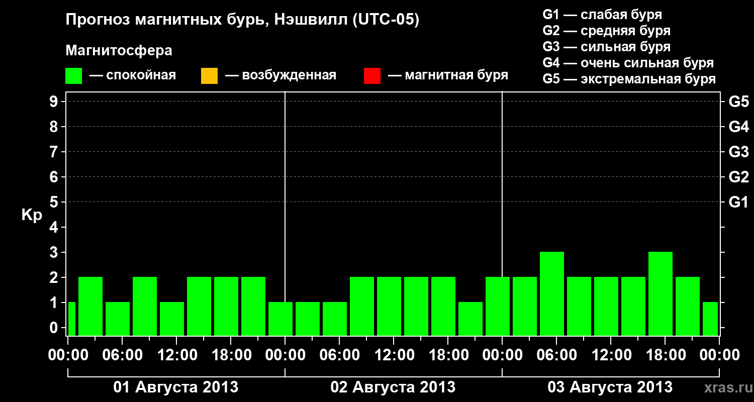 Прогноз магнитных бурь в Нэшвилле на 1 августа 2013 года