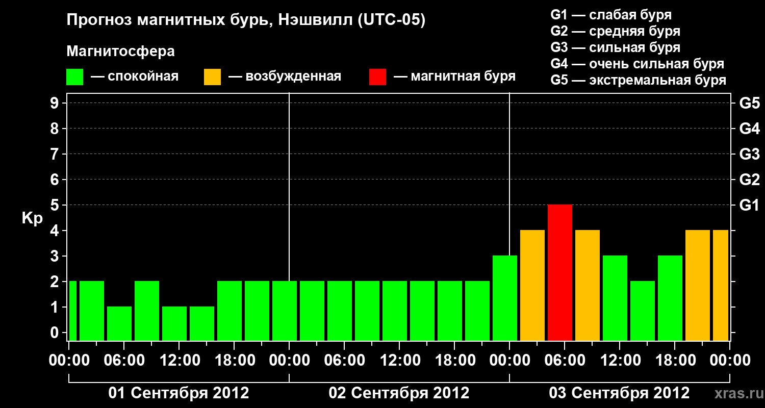 Прогноз магнитных бурь в Нэшвилле — 1 сентября 2012 года
