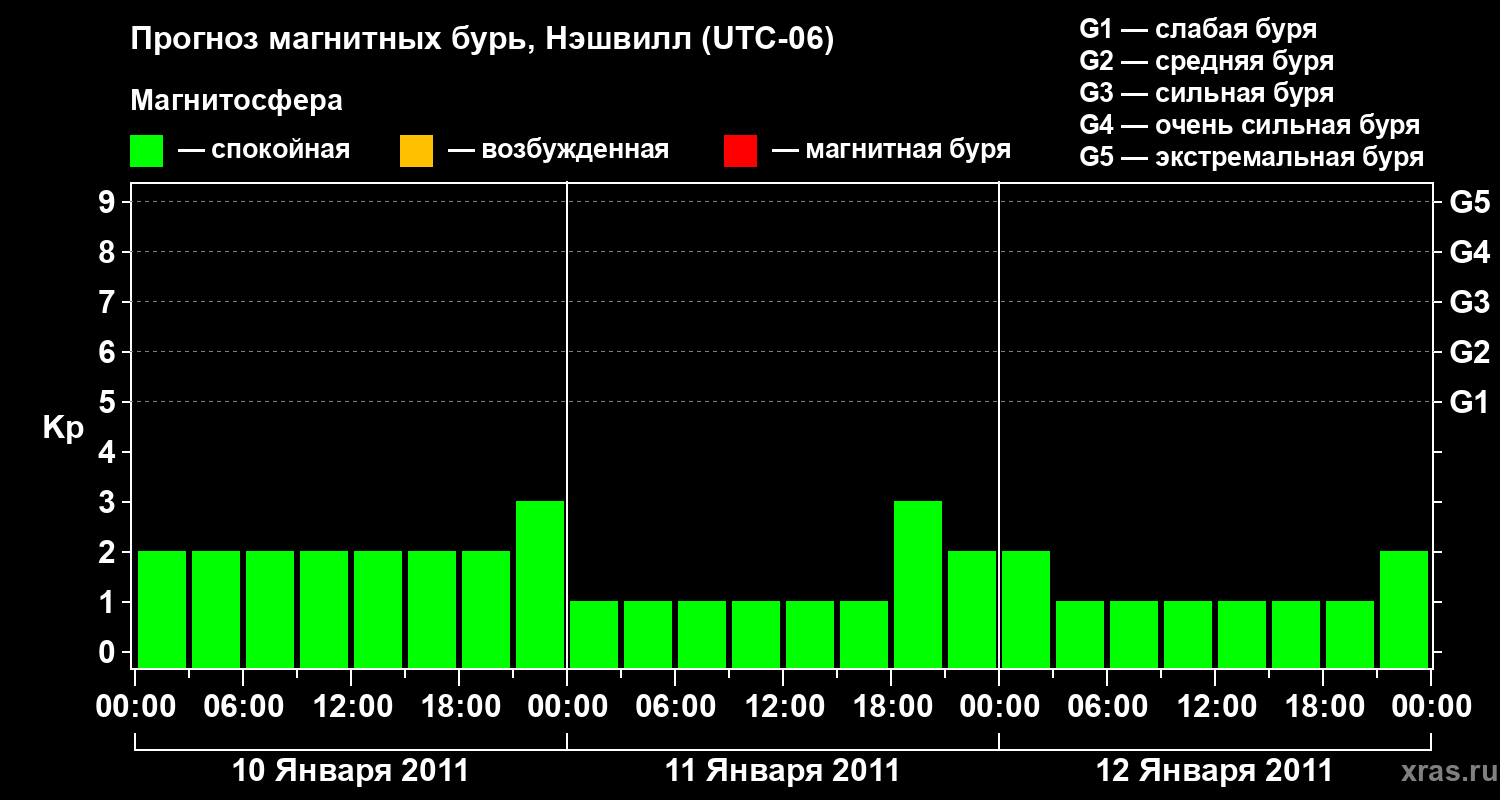Прогноз магнитных бурь в Нэшвилле — 10 января 2011 года
