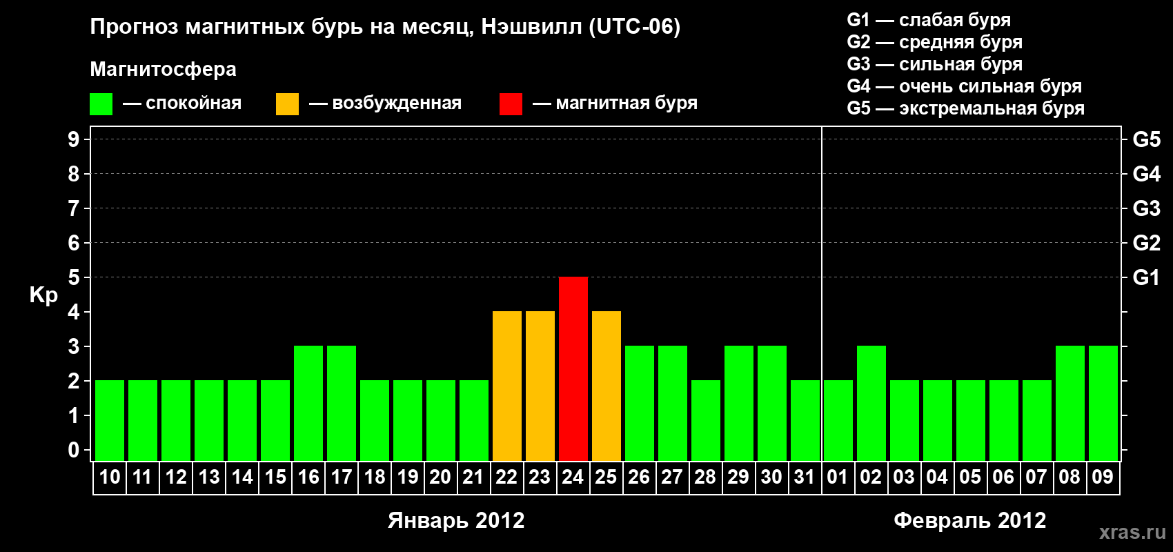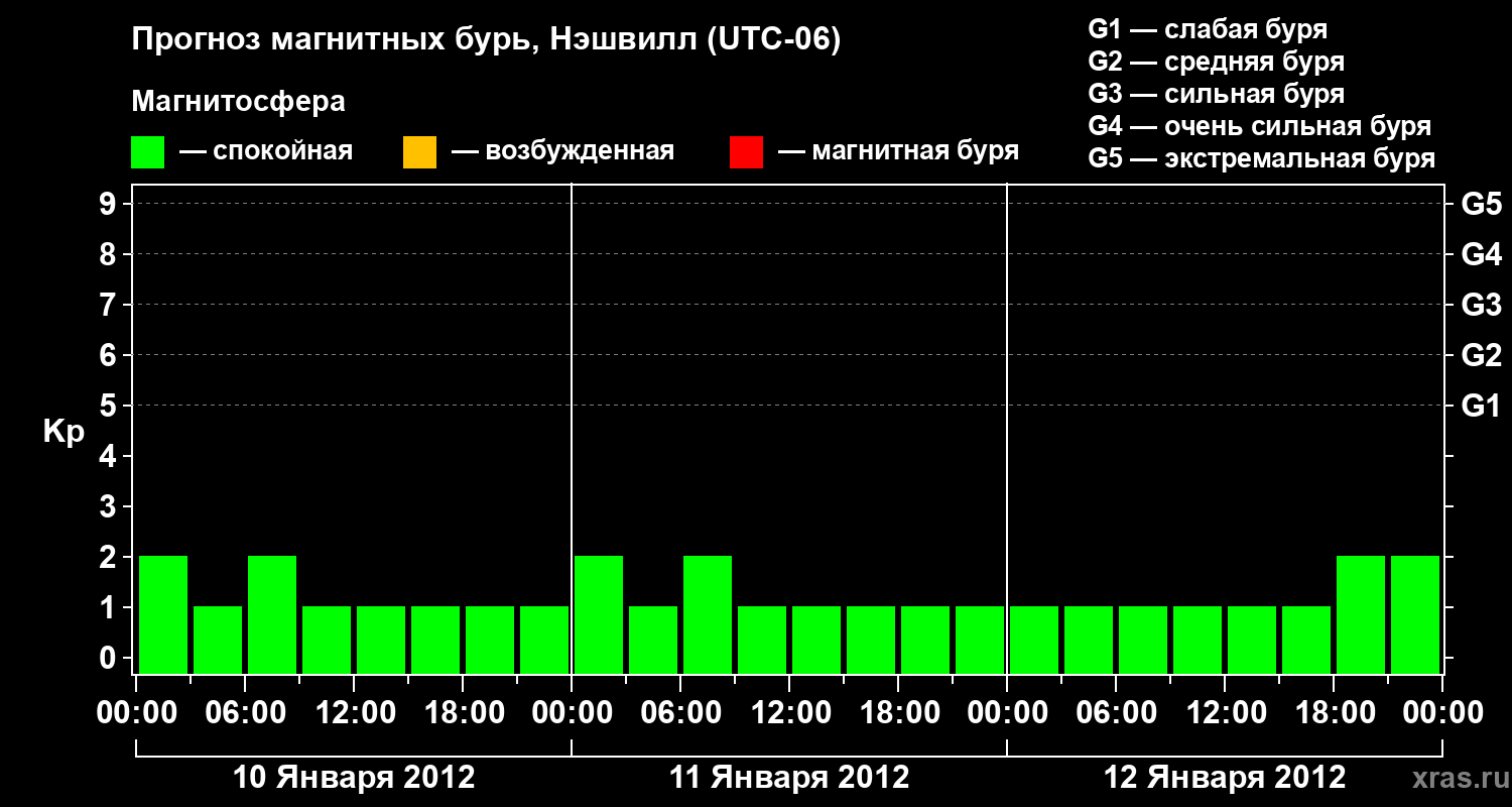 Прогноз магнитных бурь в Нэшвилле — 10 января 2012 года