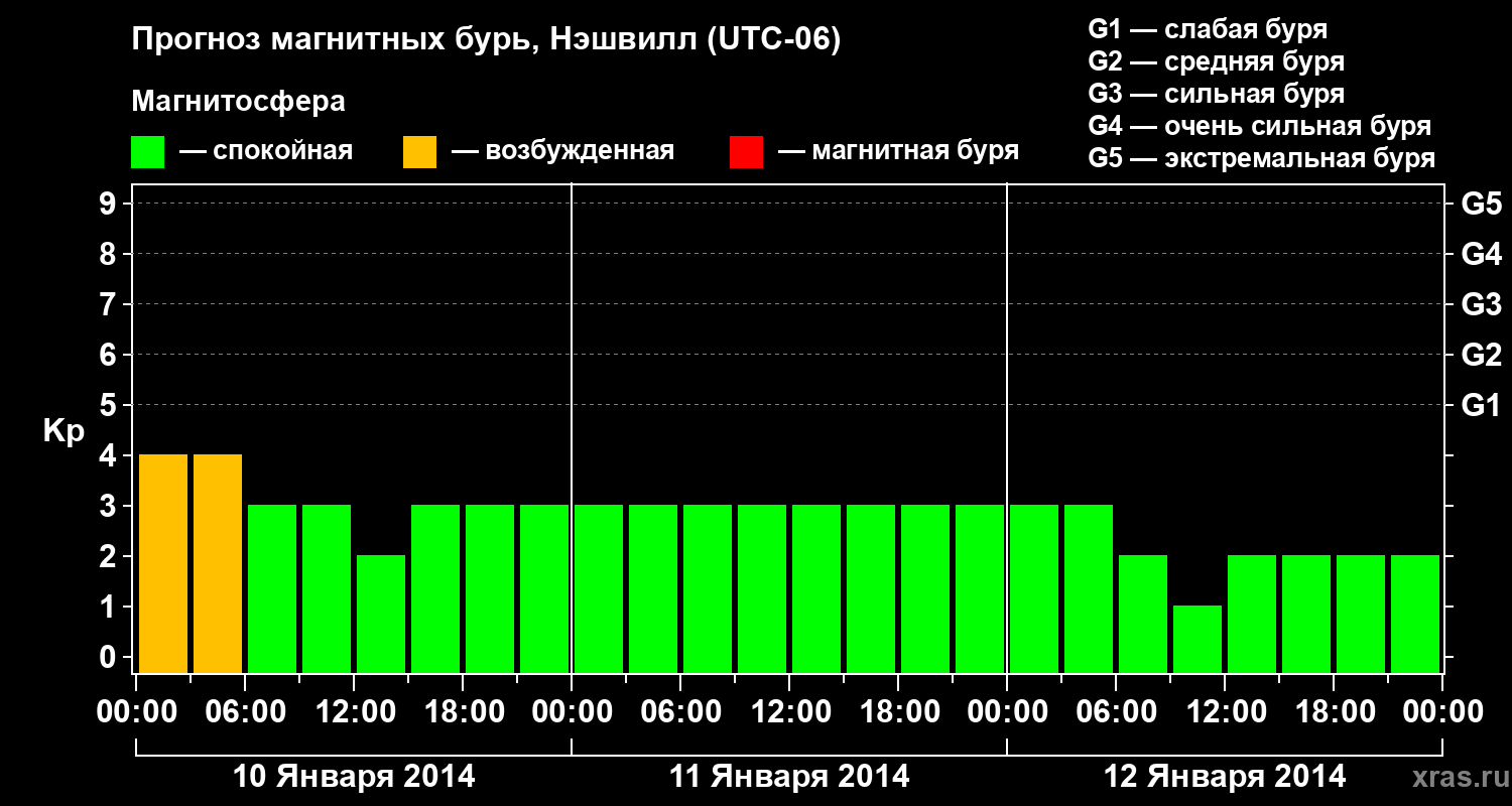 Прогноз магнитных бурь в Нэшвилле — 10 января 2014 года