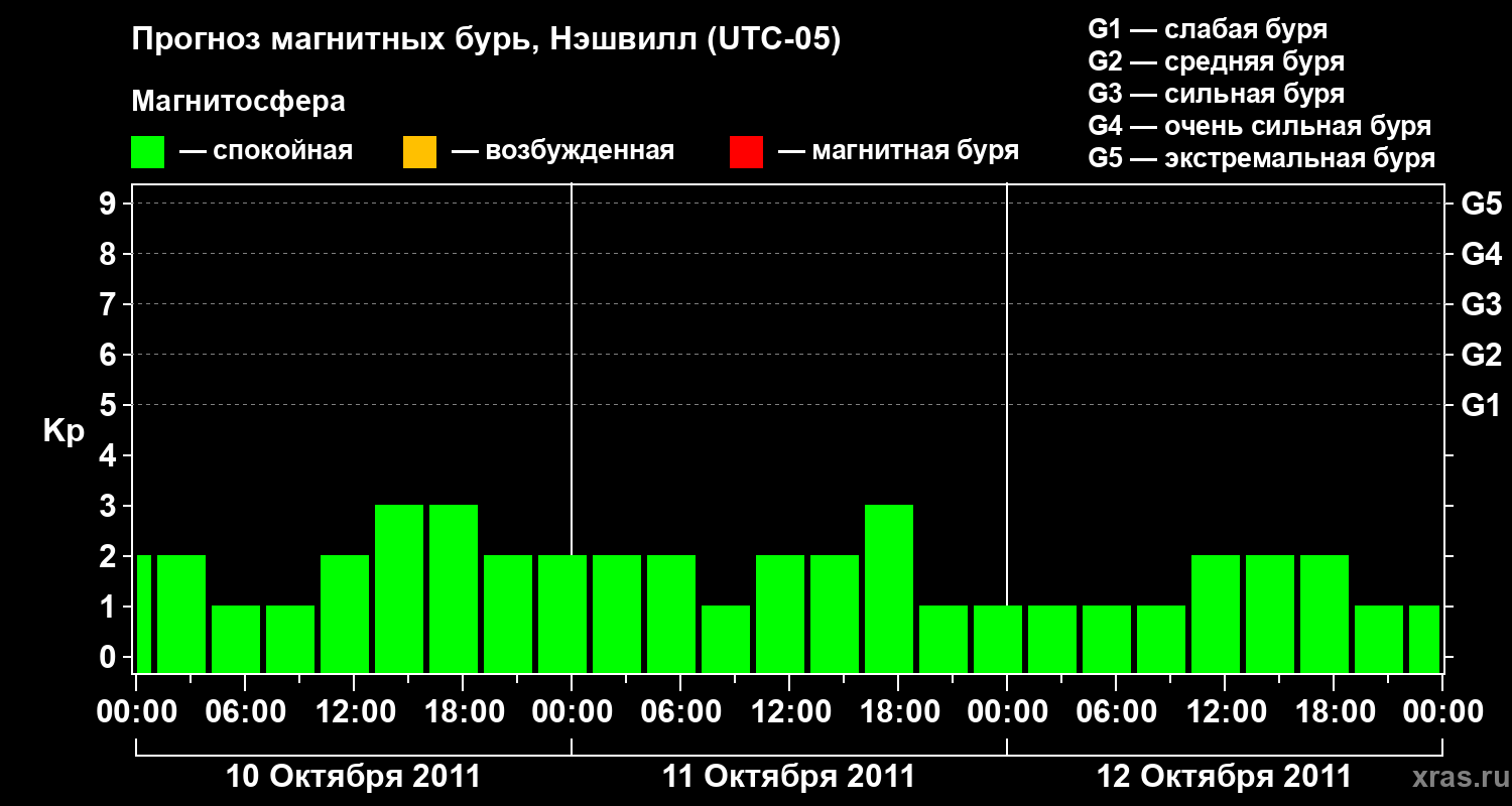 Прогноз магнитных бурь в Нэшвилле — 10 октября 2011 года