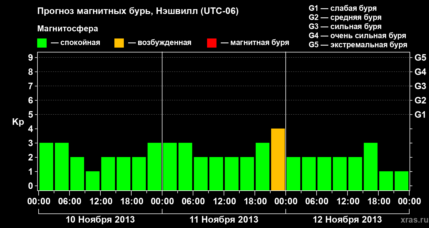 Прогноз магнитных бурь в Нэшвилле — 10 ноября 2013 года