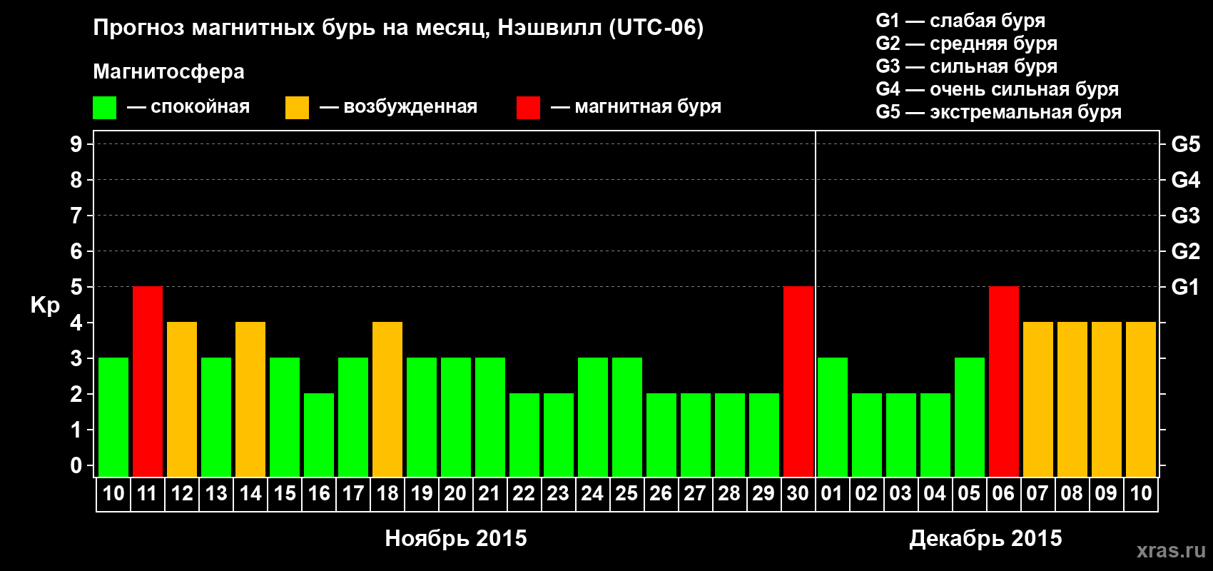 Прогноз магнитных бурь в Нэшвилле — 10 ноября 2015 года
