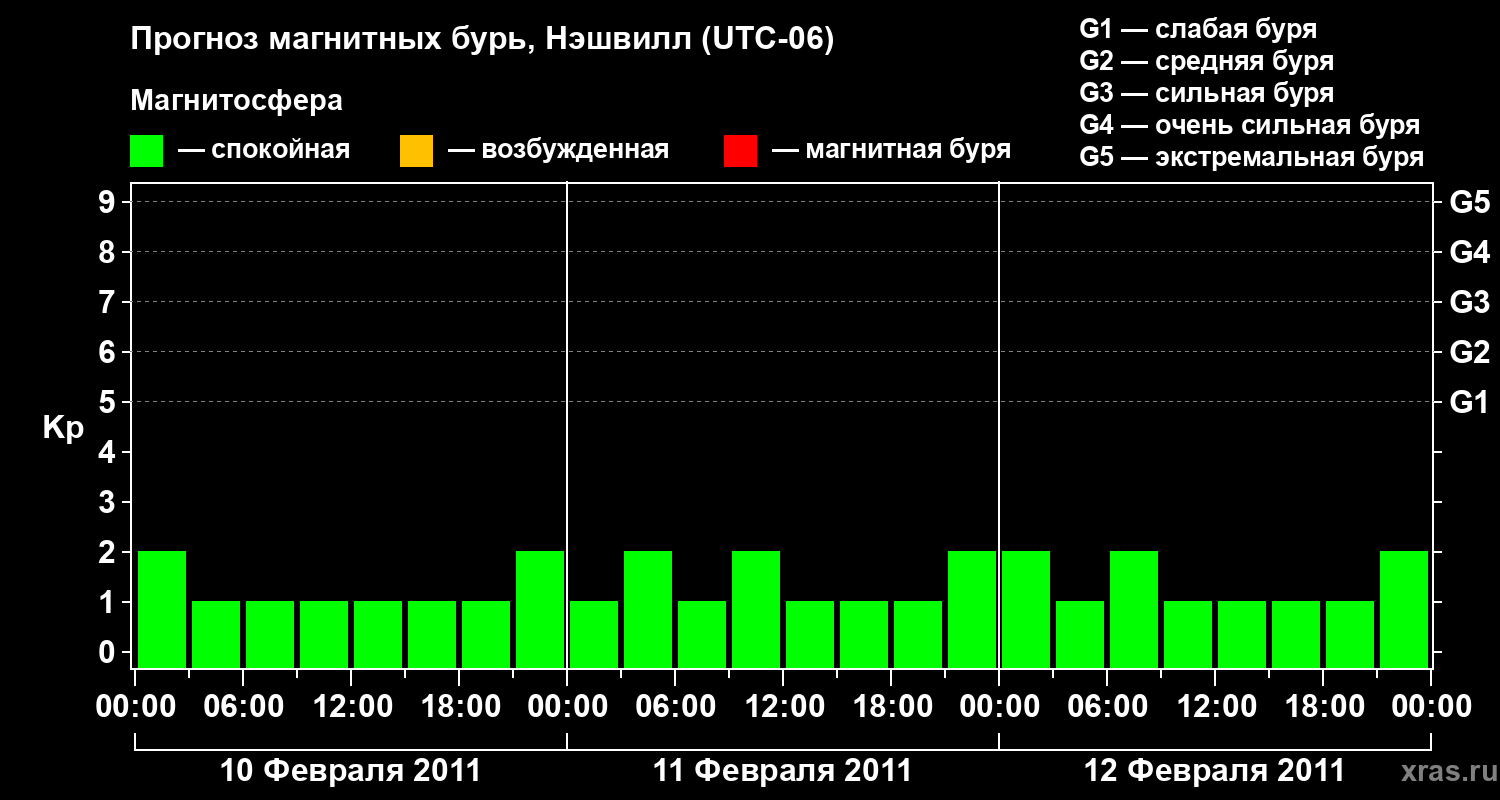 Прогноз магнитных бурь в Нэшвилле — 10 февраля 2011 года