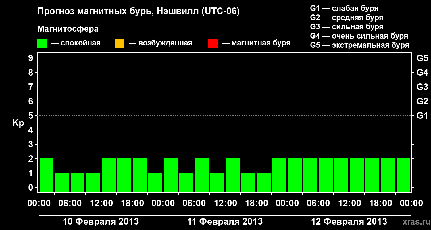 Прогноз магнитных бурь в Нэшвилле — 10 февраля 2013 года
