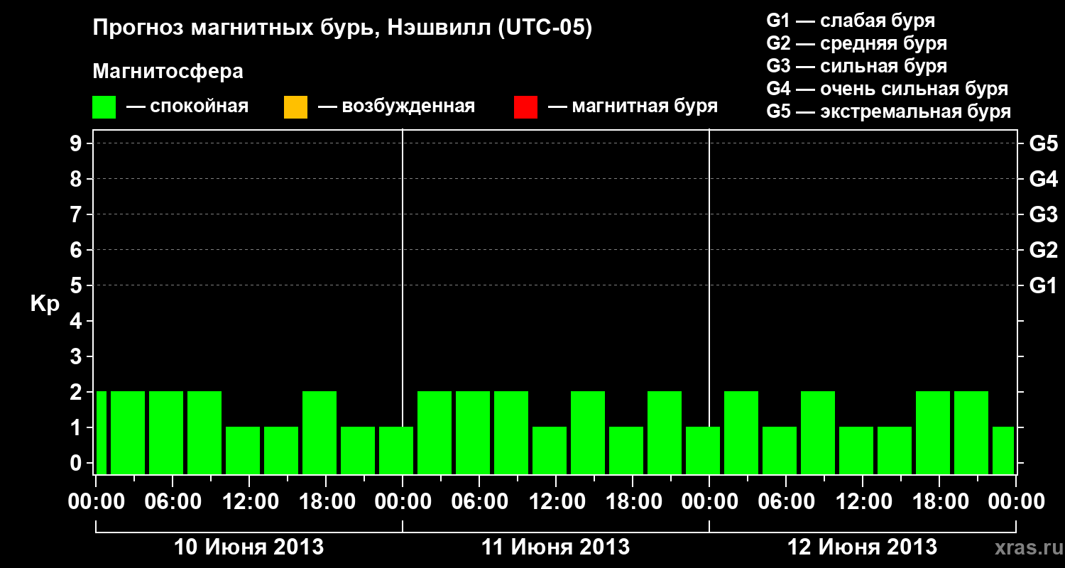 Прогноз магнитных бурь в Нэшвилле — 10 июня 2013 года
