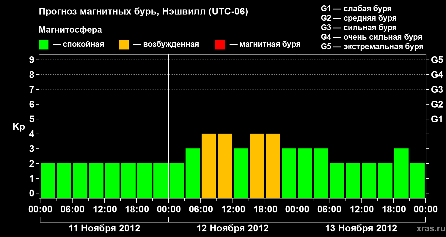 Прогноз магнитных бурь в Нэшвилле — 11 ноября 2012 года