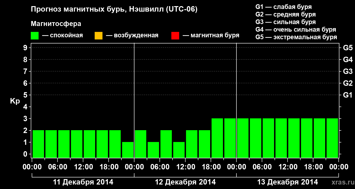 Прогноз магнитных бурь в Нэшвилле — 11 декабря 2014 года