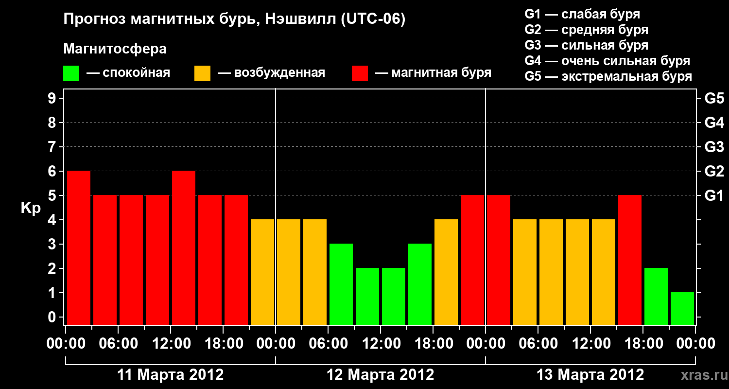 Прогноз магнитных бурь в Нэшвилле — 11 марта 2012 года