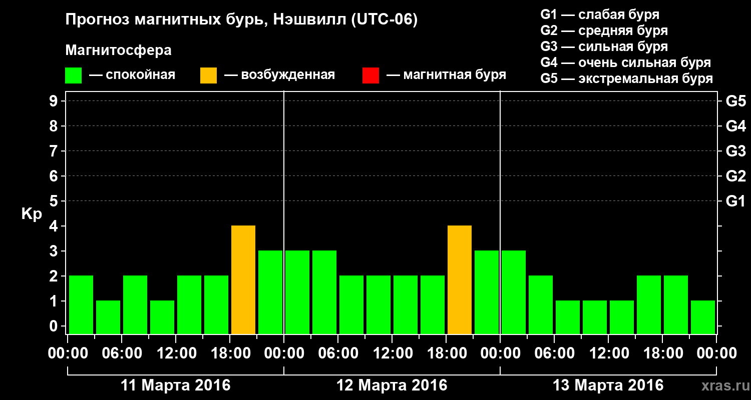 Прогноз магнитных бурь в Нэшвилле — 11 марта 2016 года