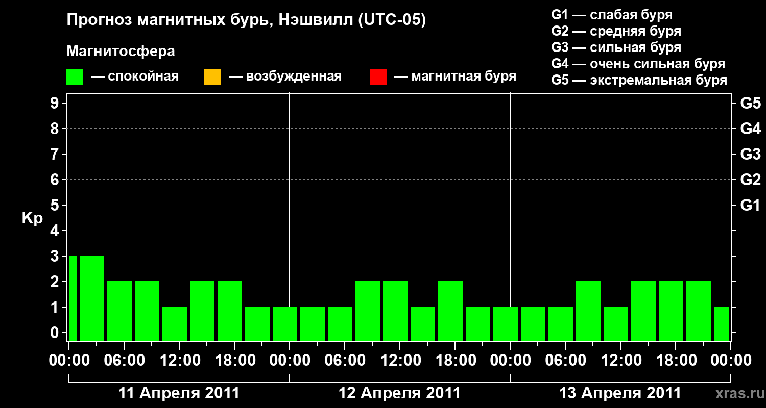 Прогноз магнитных бурь в Нэшвилле — 11 апреля 2011 года