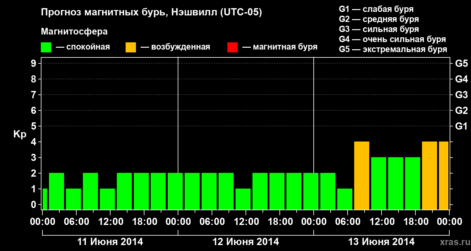 Прогноз магнитных бурь в Нэшвилле — 11 июня 2014 года