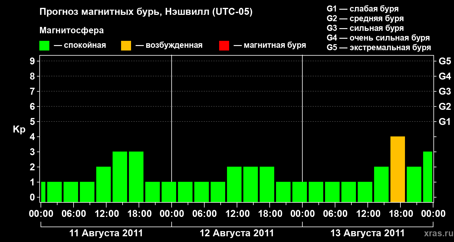 Прогноз магнитных бурь в Нэшвилле — 11 августа 2011 года
