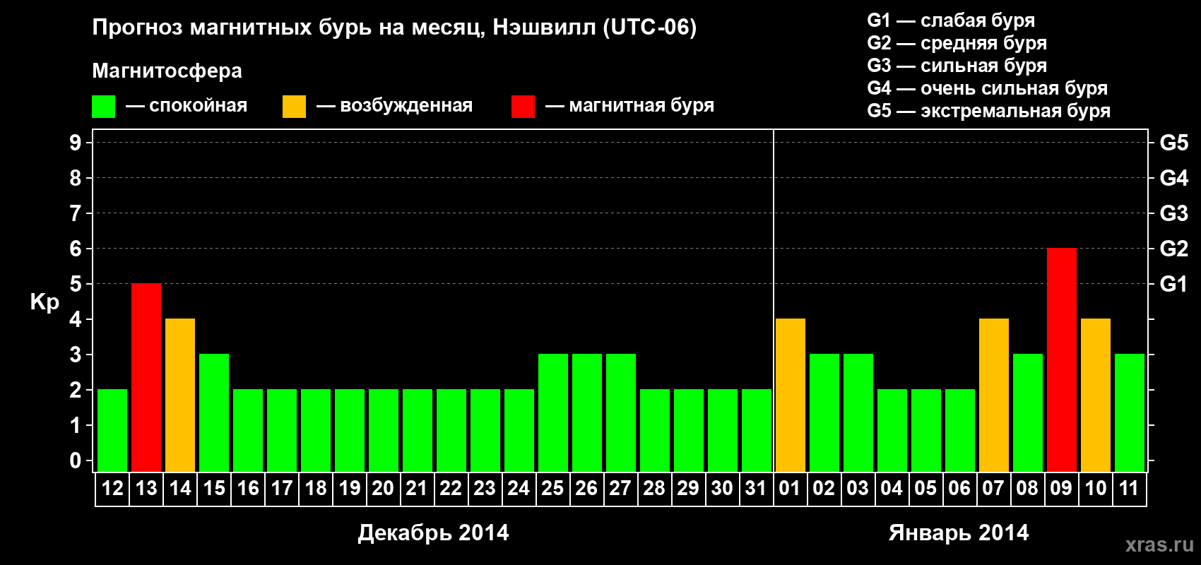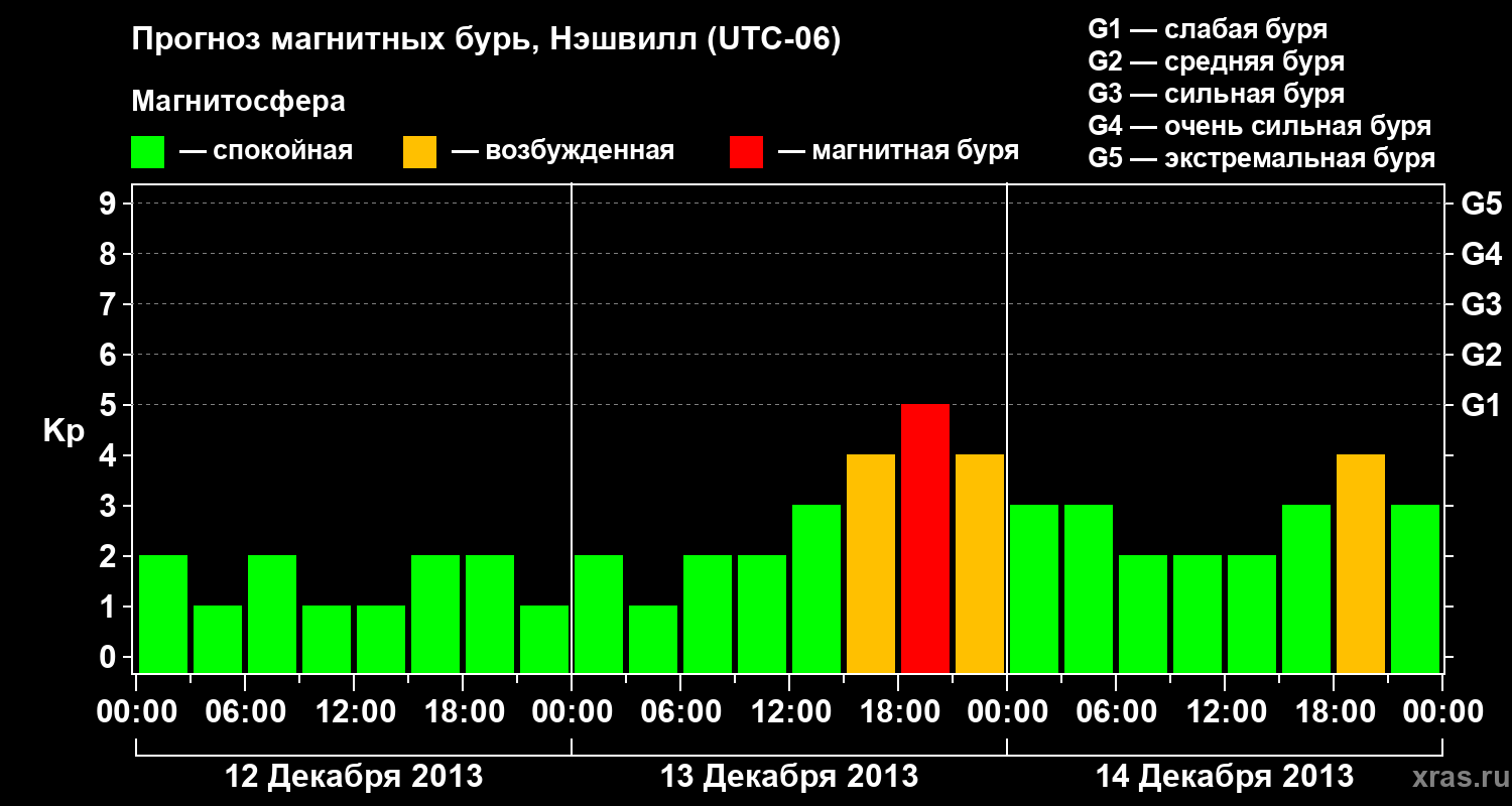 Прогноз магнитных бурь в Нэшвилле — 12 декабря 2013 года