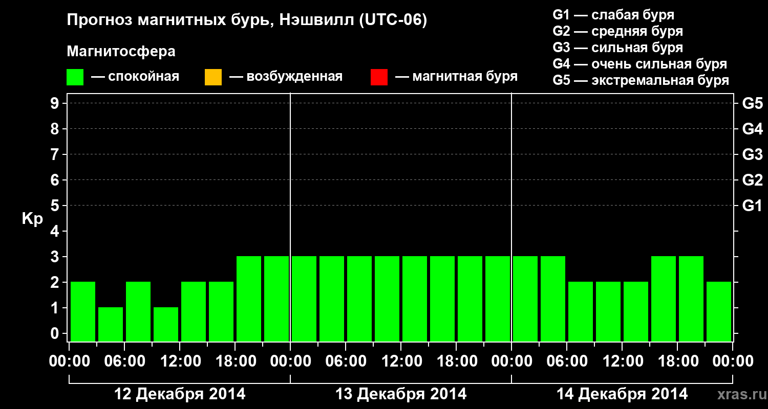 Прогноз магнитных бурь в Нэшвилле — 12 декабря 2014 года