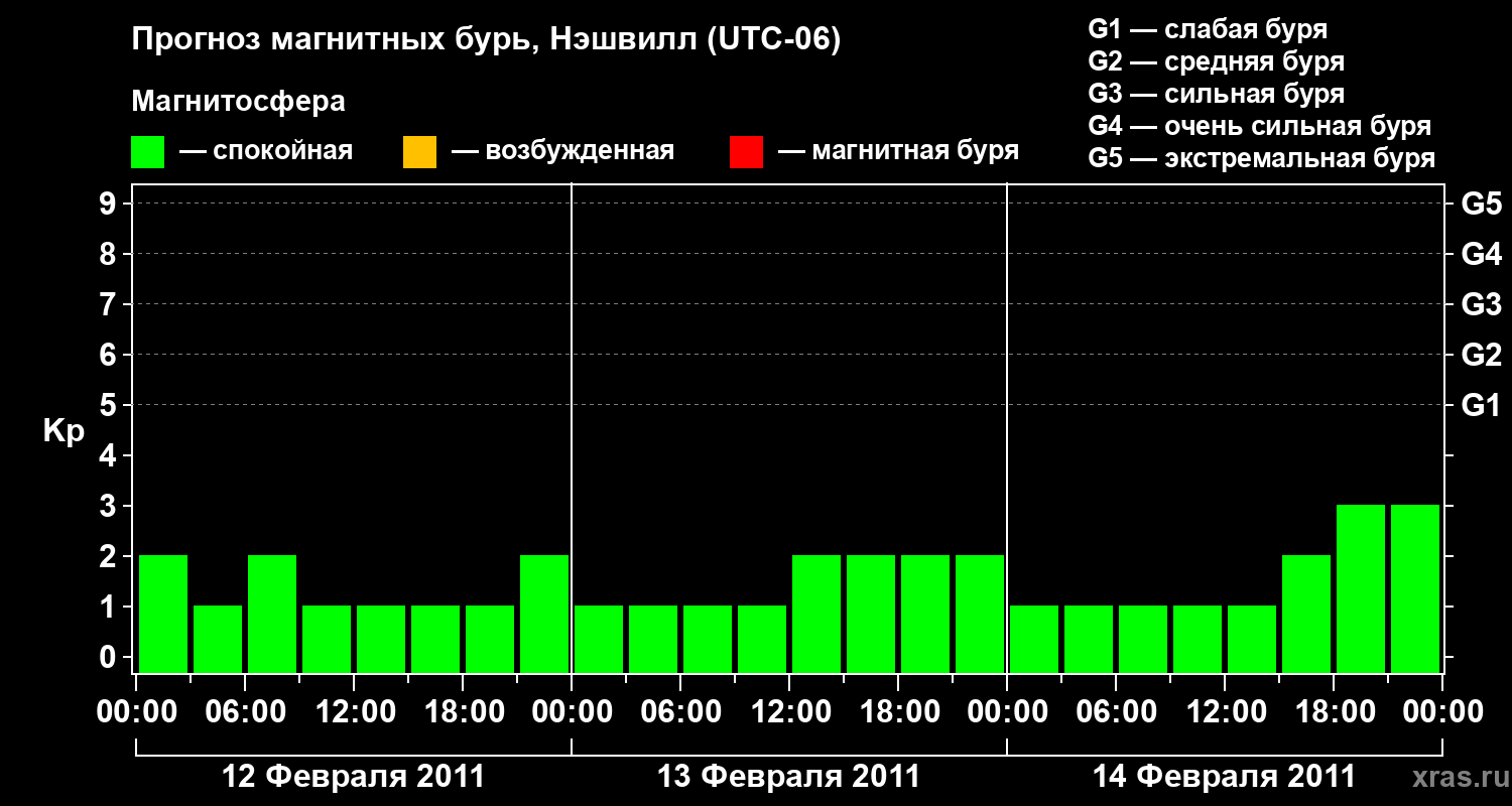 Прогноз магнитных бурь в Нэшвилле — 12 февраля 2011 года