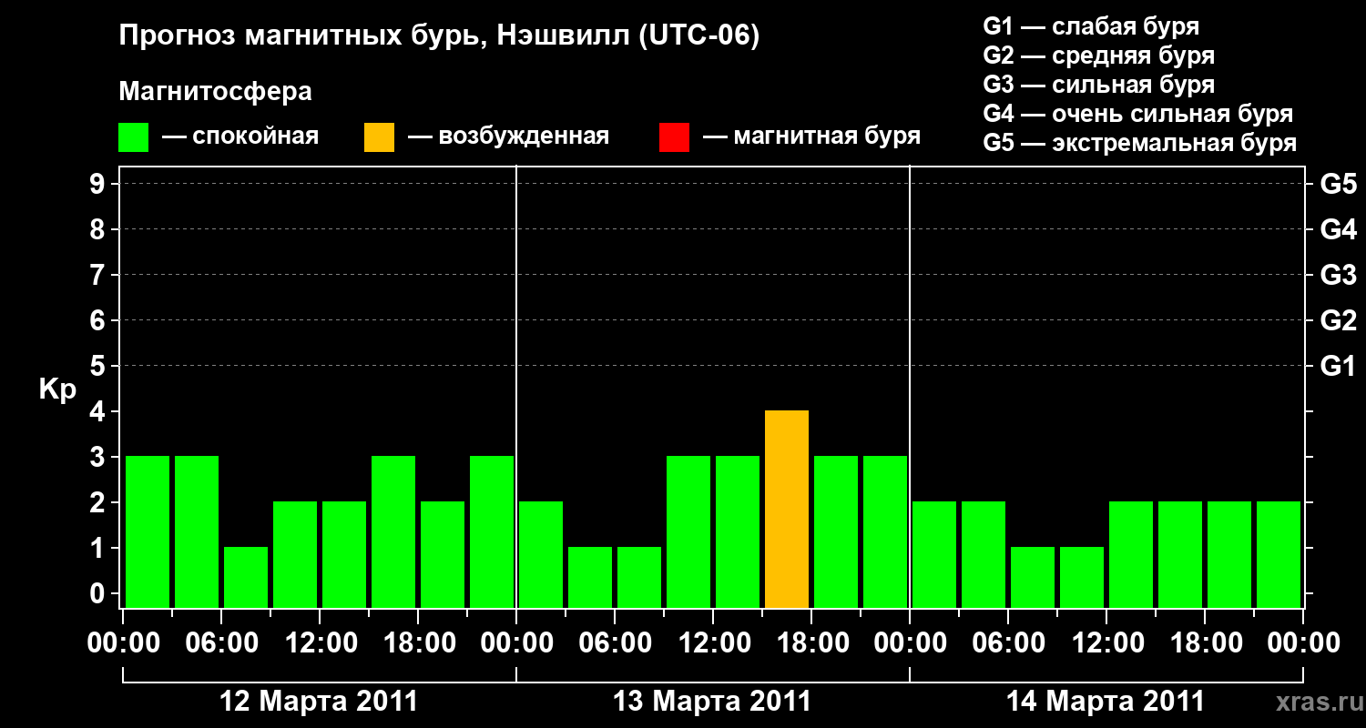 Прогноз магнитных бурь в Нэшвилле — 12 марта 2011 года