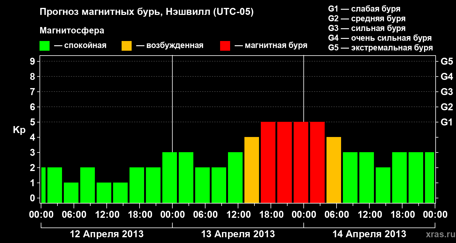 Прогноз магнитных бурь в Нэшвилле — 12 апреля 2013 года