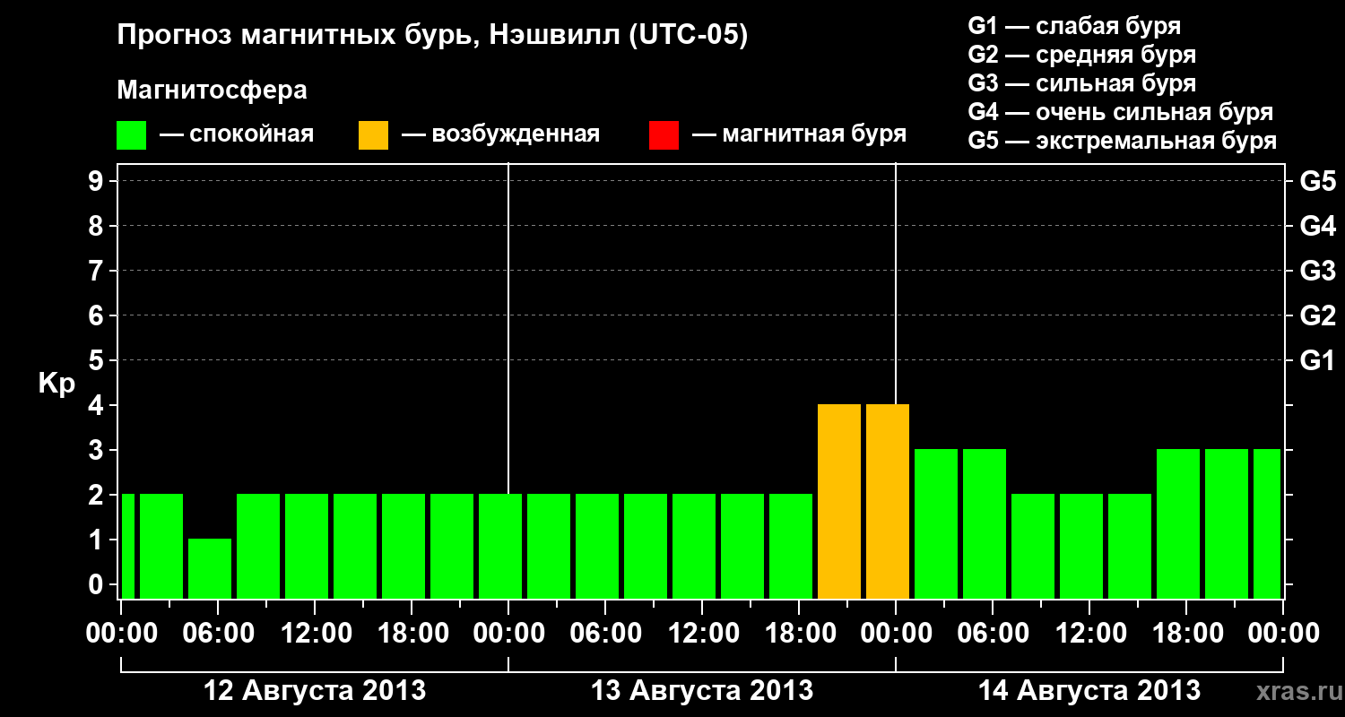 Прогноз магнитных бурь в Нэшвилле — 12 августа 2013 года