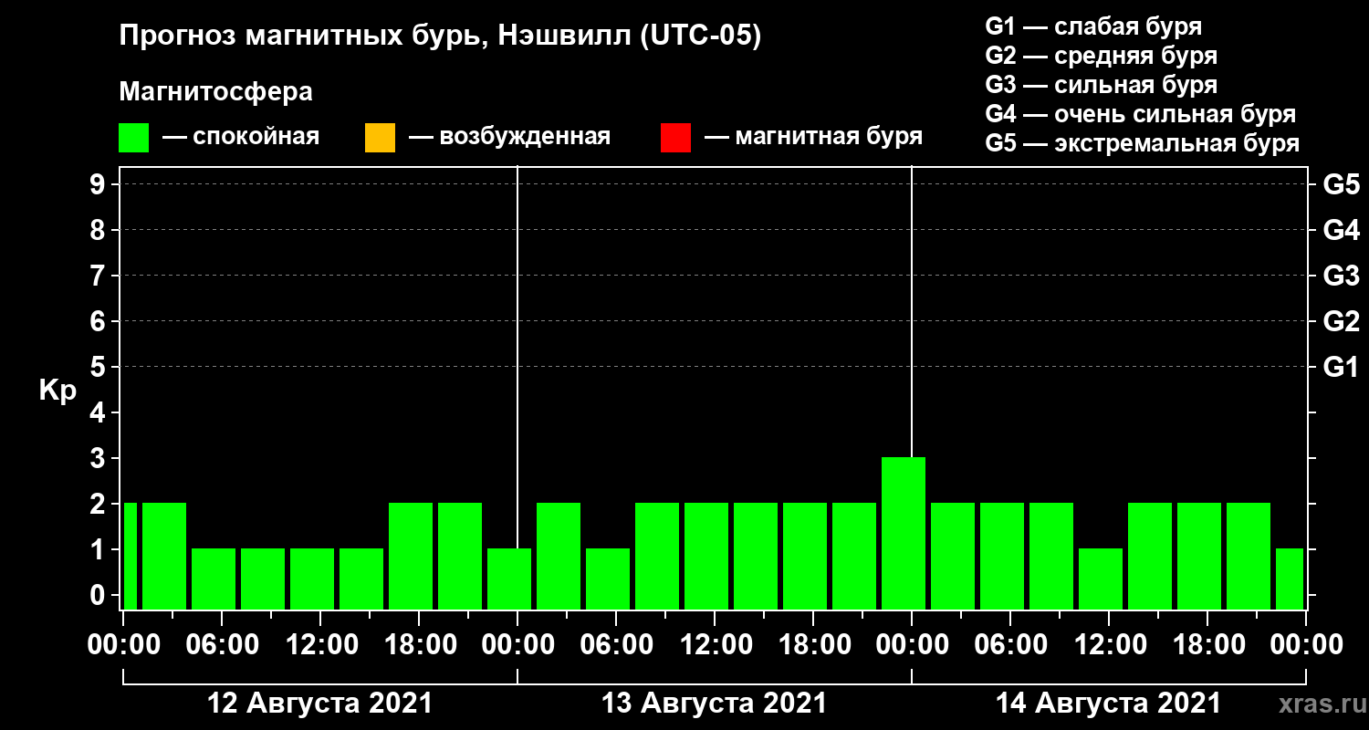 Прогноз магнитных бурь в Нэшвилле на 12 августа 2021 года