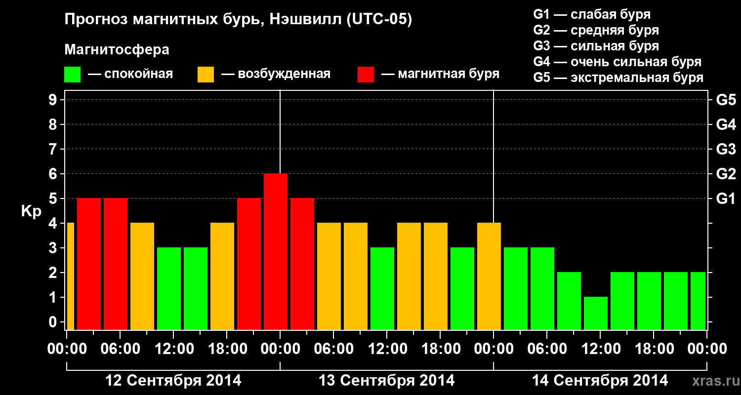 Прогноз магнитных бурь в Нэшвилле на 12 сентября 2014 года
