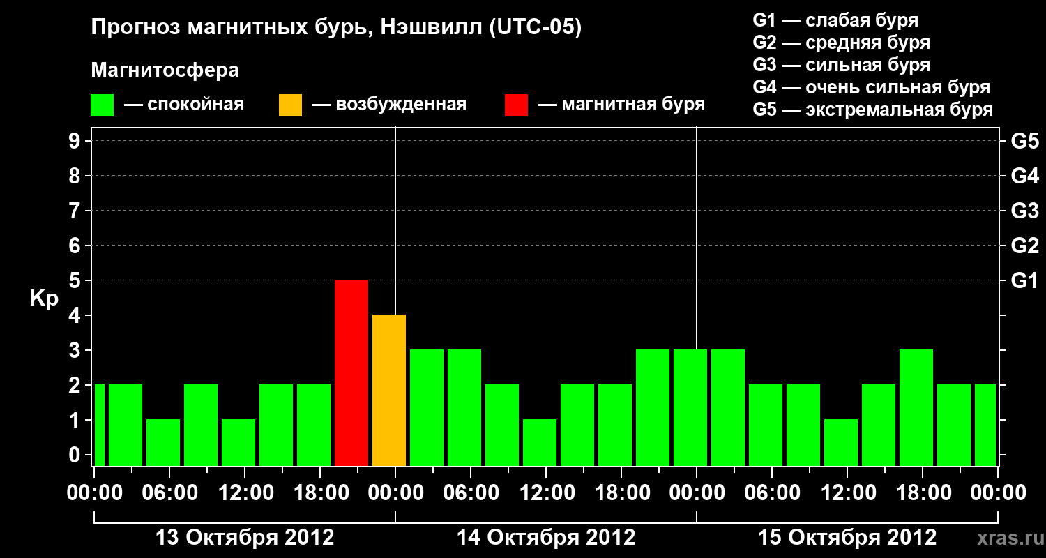 Прогноз магнитных бурь в Нэшвилле — 13 октября 2012 года