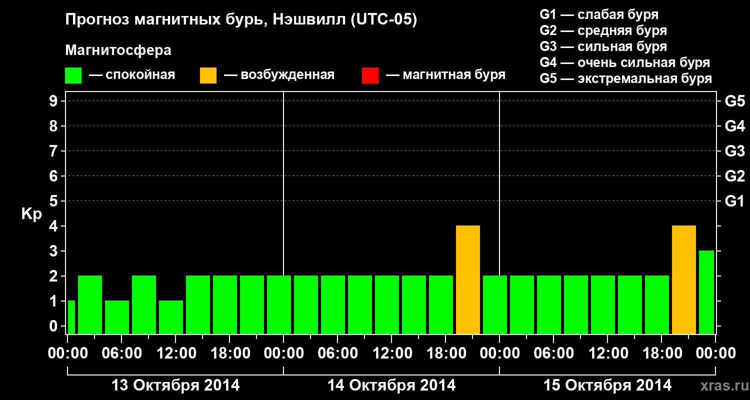 Прогноз магнитных бурь в Нэшвилле на 13 октября 2014 года