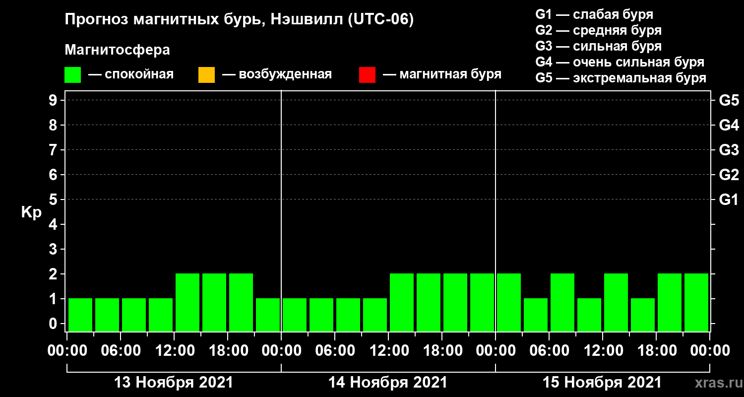 Прогноз магнитных бурь в Нэшвилле — 13 ноября 2021 года