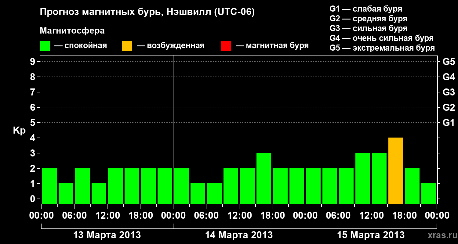 Прогноз магнитных бурь в Нэшвилле — 13 марта 2013 года
