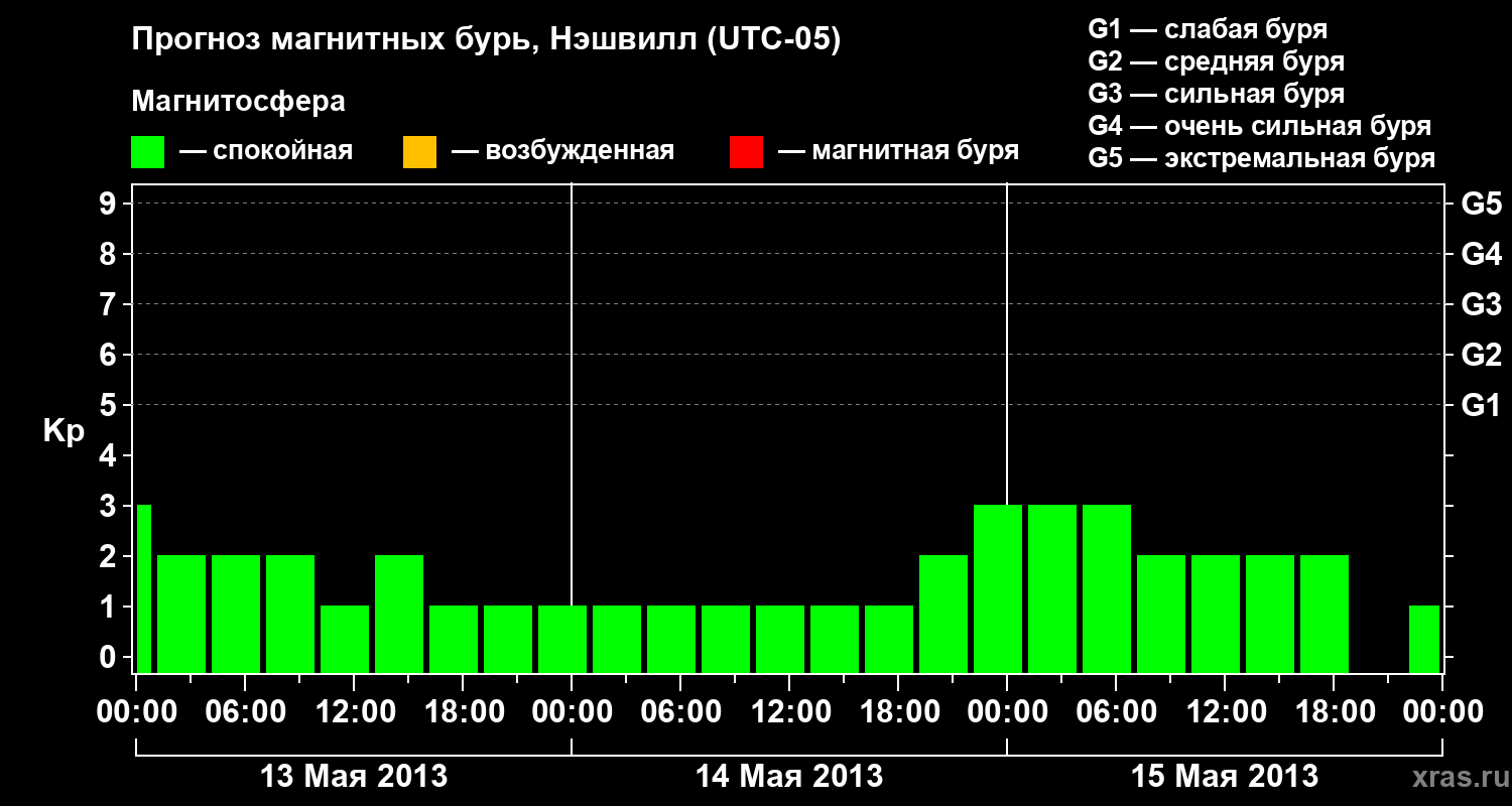 Прогноз магнитных бурь в Нэшвилле на 13 мая 2013 года
