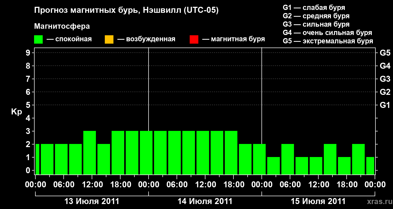 Прогноз магнитных бурь в Нэшвилле на 13 июля 2011 года