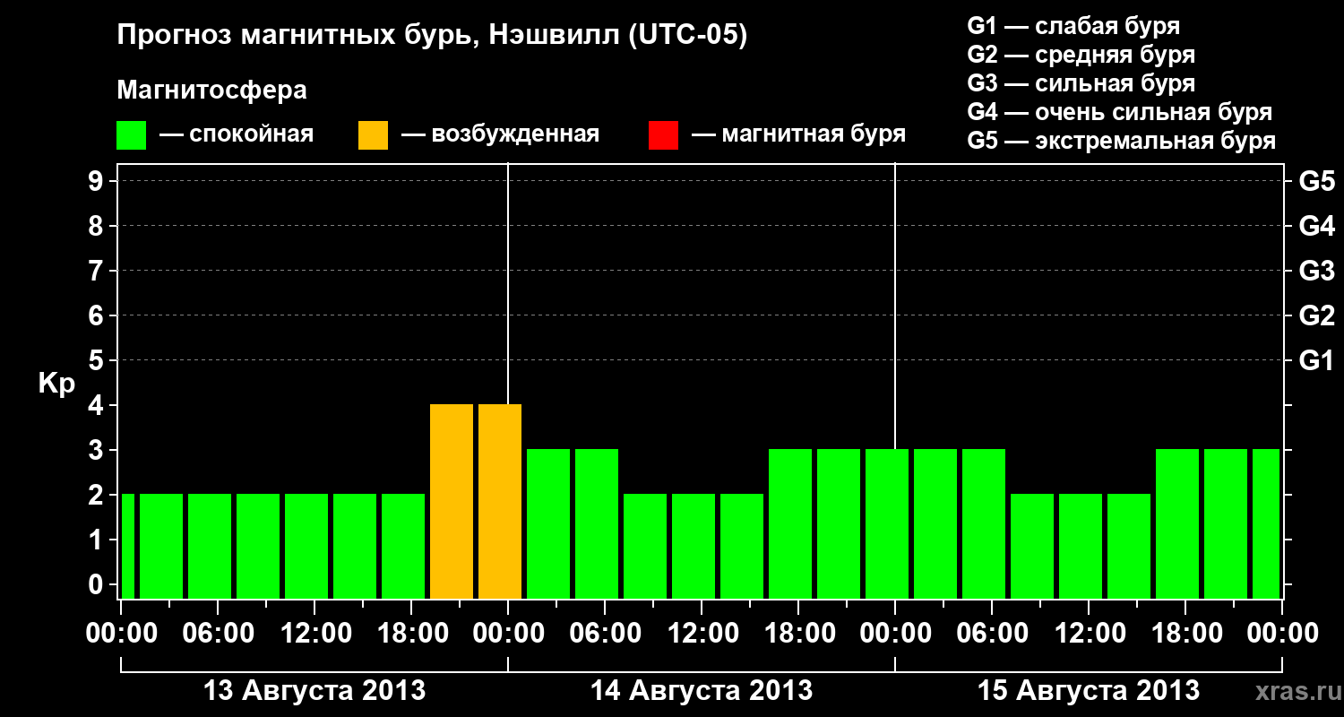 Прогноз магнитных бурь в Нэшвилле — 13 августа 2013 года
