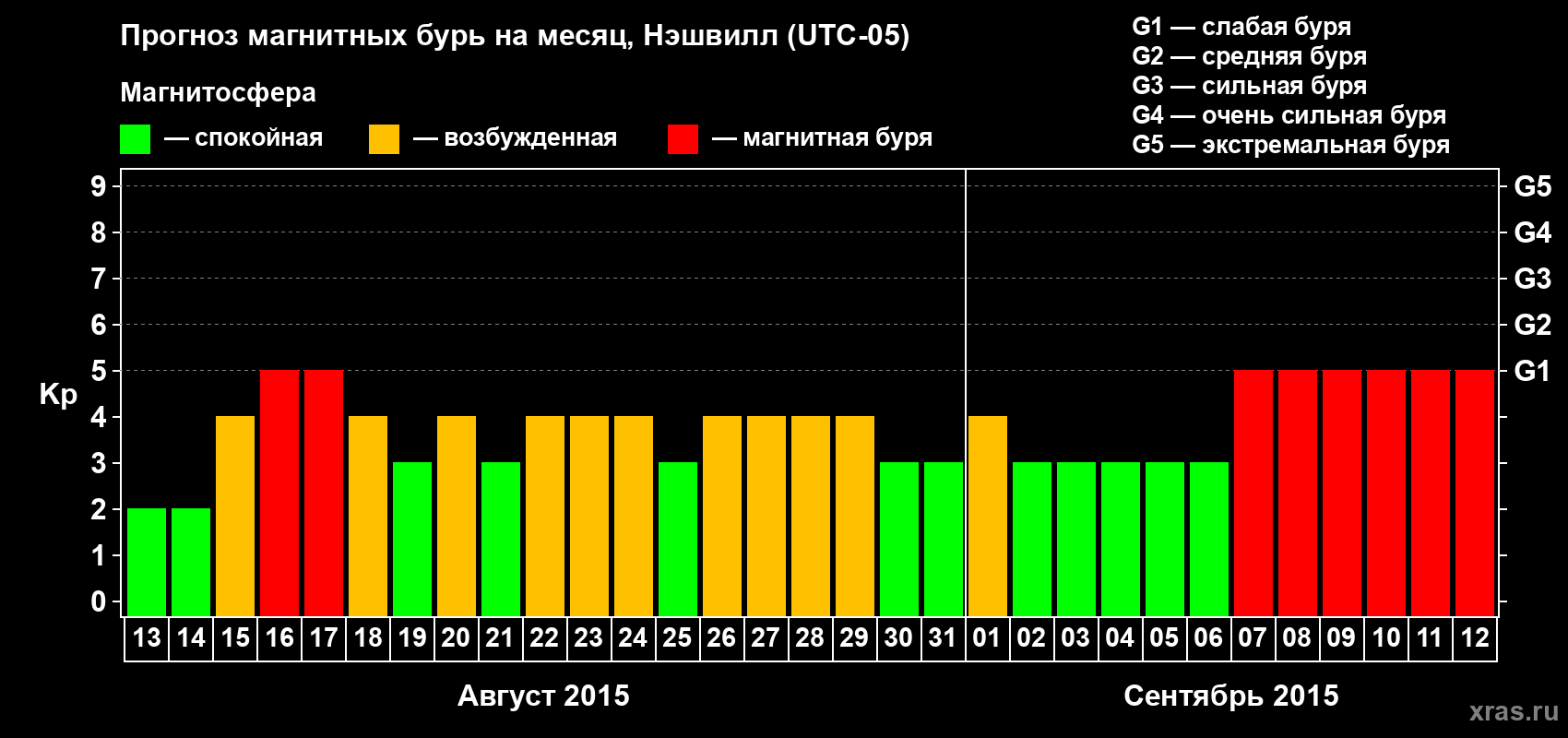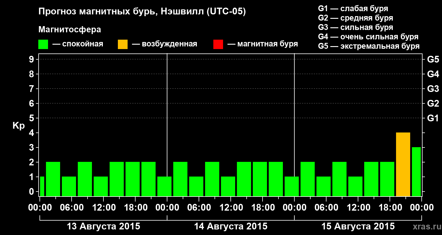 Прогноз магнитных бурь в Нэшвилле — 13 августа 2015 года