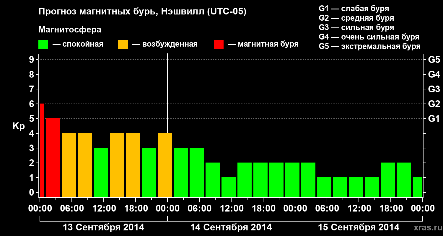 Прогноз магнитных бурь в Нэшвилле — 13 сентября 2014 года